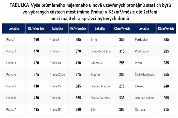 Aktuální data potvrzují, že nájemní trh v Česku nelze vnímat jako jednotný celek. Rozdíly mezi regiony i jednotlivými částmi měst zůstávají výrazné a v čase se dále prohlubují. Nejvyšší nájemné si dlouhodobě drží Praha, kde se u starších bytů ceny ve vybraných městských částech pohybují přibližně od 370 do 490 Kč za m². Například v Praze 1 dosahuje nájemné kolem 490 Kč za m², v Praze 2 přibližně 470 Kč a ve vybraných částech širšího centra, jako je Praha 3 nebo Praha 6, se pohybuje mezi 420 a 430 Kč za m².